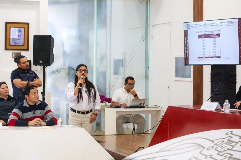 Durante la sesión, la Coordinadora de Salud Pública Municipal, Yaritza del Carmen Felipe Reyes, presentó el informe de resultados, en el que explicó que, en Quintana Roo, hasta el 30 de septiembre de 2025, se contabilizaron 886 casos, con una incidencia del 46.44%, predominando en hombres y en el grupo de edad de 25 a 34 años. Señaló que la mayoría de los casos se detectaron en estadio 1, principalmente a través de actividades de tamizaje, siendo la vía sexual el principal medio de transmisión.